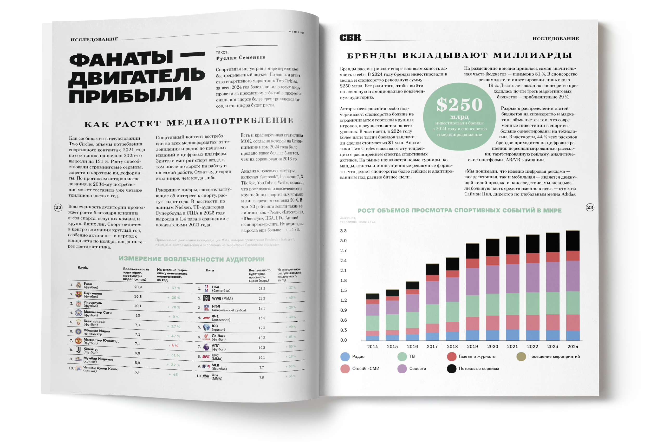 Какие события становятся точками притяжения в индустрии? Кто определяет направление движения – бренды, клубы или новые форматы активаций? Как меняется экономика спорта на фоне инвестиций, технологических решений и роста корпоративных практик? В №61 мы собрали ответы – через цифры, кейсы и мнения экспертов.