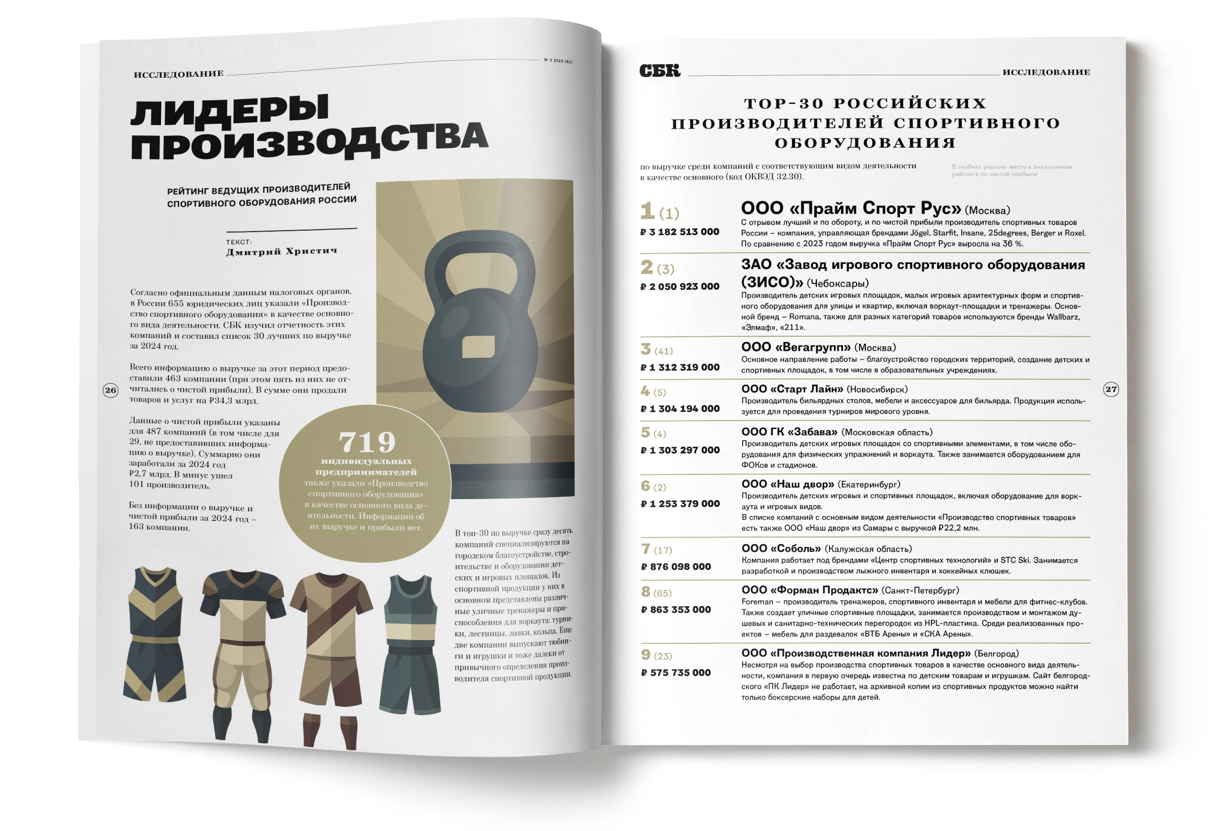 Все больше мячей, тренажеров, формы и инвентаря производят отечественные компании и бренды. В этом выпуске мы провели исследование рынка и составили рейтинг ведущих российских производителей спортивного оборудования. Также разобрались, кто сегодня формирует предложение и как локальные игроки постепенно вытесняют мировые бренды.