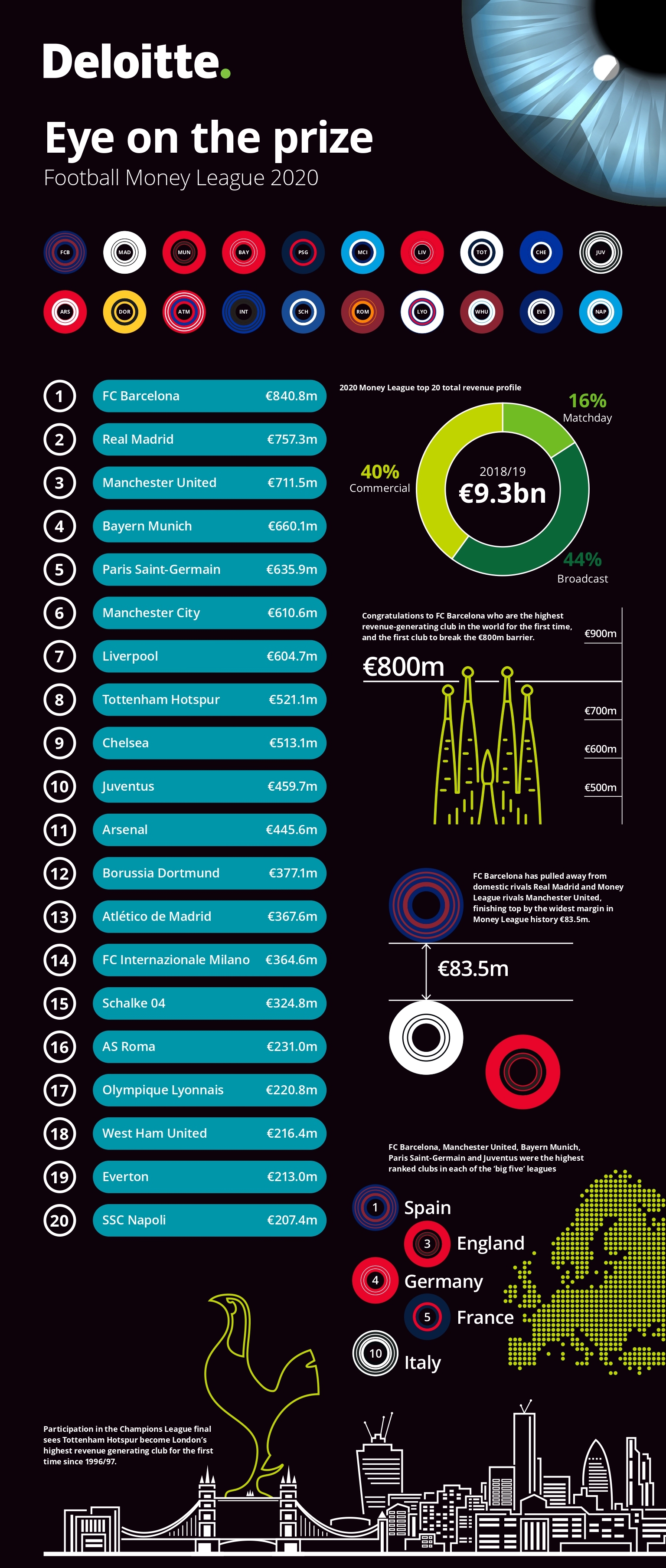 Клуб впервые возглавил рейтинг европейских топ-клубов от международной консалтинговой компании Deloitte.